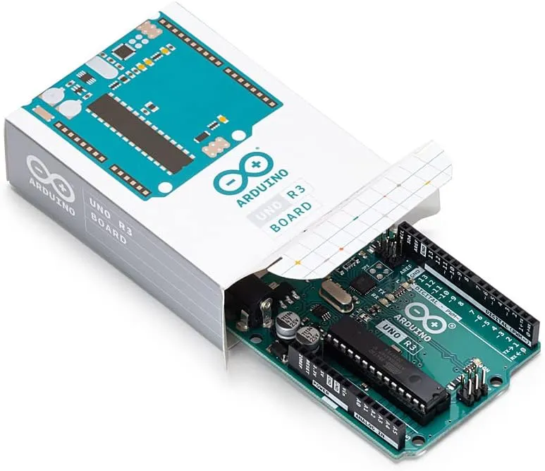 The **Arduino Uno** microcontroller board uses the ATmega328P microcontroller according to its [datasheet](http://ww1.microchip.com/downloads/en/DeviceDoc/Atmel-7810-Automotive-Microcontrollers-ATmega328P_Datasheet.pdf). The system provides 14 digital input/output pins which include 6 pins that support PWM output and 6 analog inputs and a 16 MHz ceramic resonator (CSTCE16M0V53-R0) and a USB connection and a power jack and an ICSP header and a reset button. The device provides all necessary components for microcontroller operation because users just need to connect it to their computer through USB or power the device using AC-to-DC adapters or batteries. The Uno allows you to experiment freely because you can easily replace the chip if something goes wrong which will only cost you a few dollars.