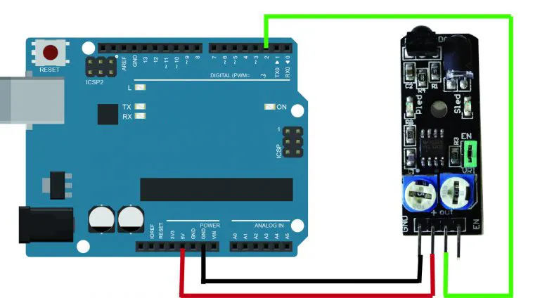 After the comparator circuit processing, green indicator will light up, at the same time the signal output interface output a digital signal (a low level signal), can be adjust the detection distance through the potentiometer knob, effective distance range 2 ~ 60 cm, easy to assemble and use. So it can be widely used in robot obstacle avoidance, obstacle avoidance car, line count, and so on many occasions.
